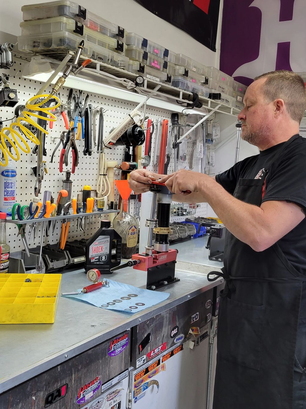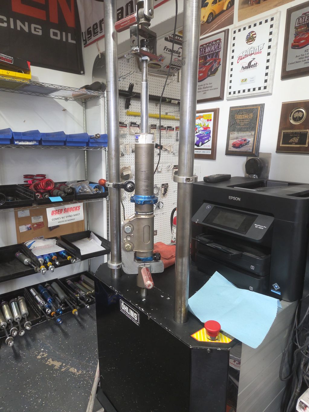 Our 10hp Roehrig shock dynamometer can verify exact valving requirements up to 5000lbs. of force. Our custom extended stanchions allow us to test absorbers up to 36" strokes. Each shock that we test comes with a color print-out verifying shock valving at all velocities tested.